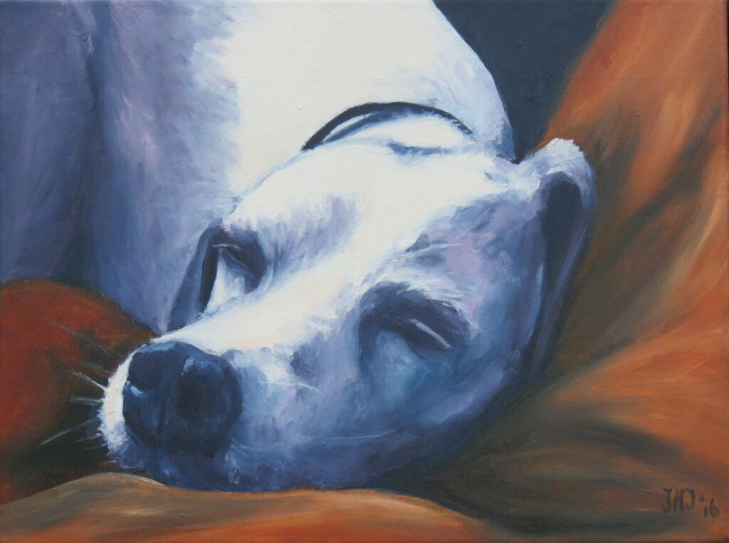 Onze hond Pippy is al bijna 15 jaar en dat is te merken; Ze is een wandelend skeletje met een velletje erover, niet meer goed zindelijk en ze loopt moeilijk. Doordat ze 2 jaar geleden een herseninfarct heeft gehad, heeft ze geen controle meer over haar achterpoten, waardoor ze ook regelmatig omvalt en het haar niet lukt om zelfstandig op te staan. Omdat ze nog eet, geen pijn heeft en vrolijk is, vindt de dierenarts het nog niet nodig om haar in te laten slapen. Maar het is duidelijk dat het einde nadert.
